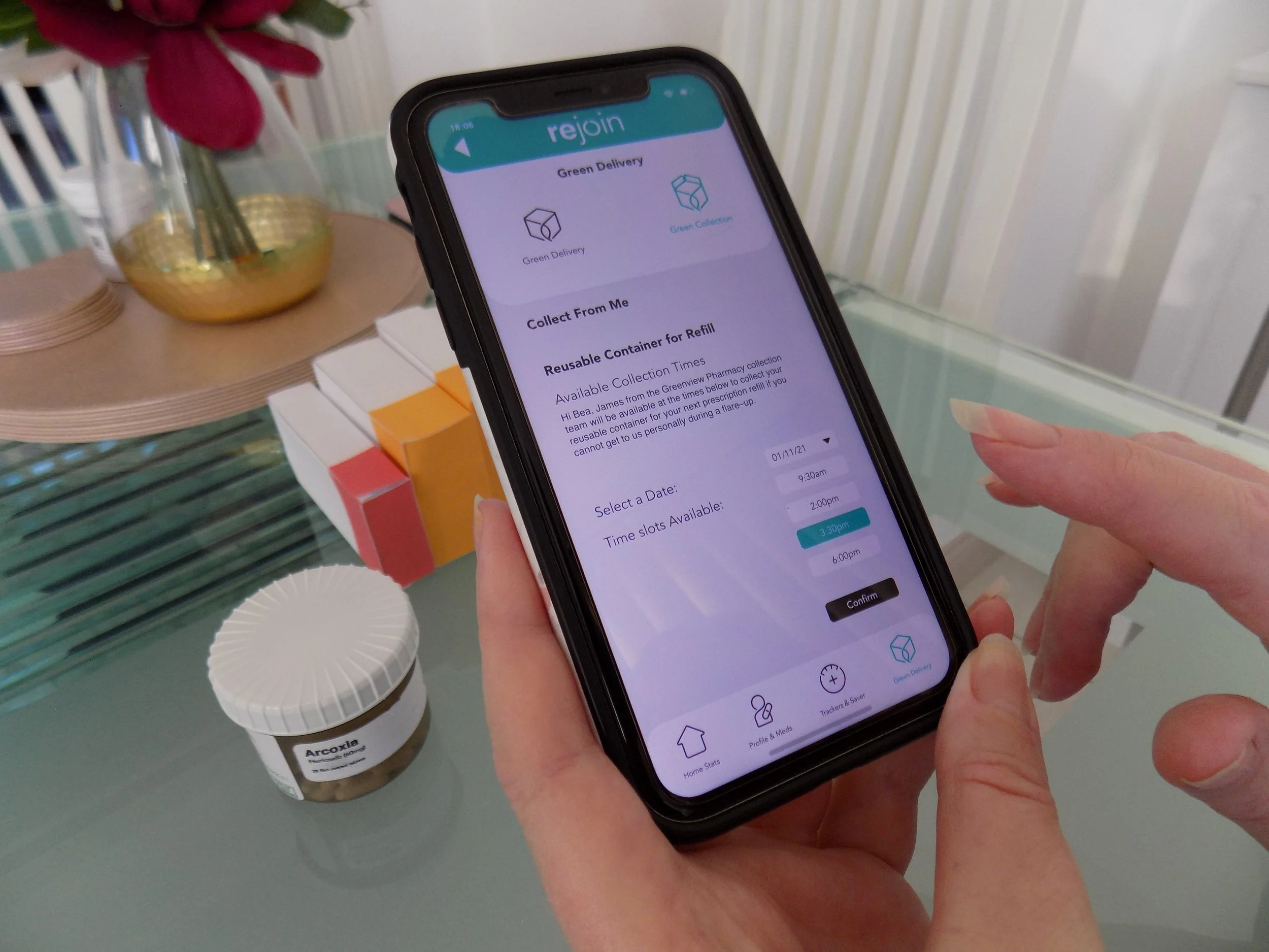 Solution: The solution is is a brand, ‘green’ app, and packaging design system. The app is focused on; tracking patient’s energy consumption to aid avoiding flare-ups and pairing with a medication delivery and packaging scheme to make arthritis a greener condition. The packaging has multiple reusable, recyclable, and compostable solutions to help patients manage their arthritis condition’s material waste. Where disposable packaging is needed, it is colour coded to help in organising medication for arthritis, according to their use and energy consumption.